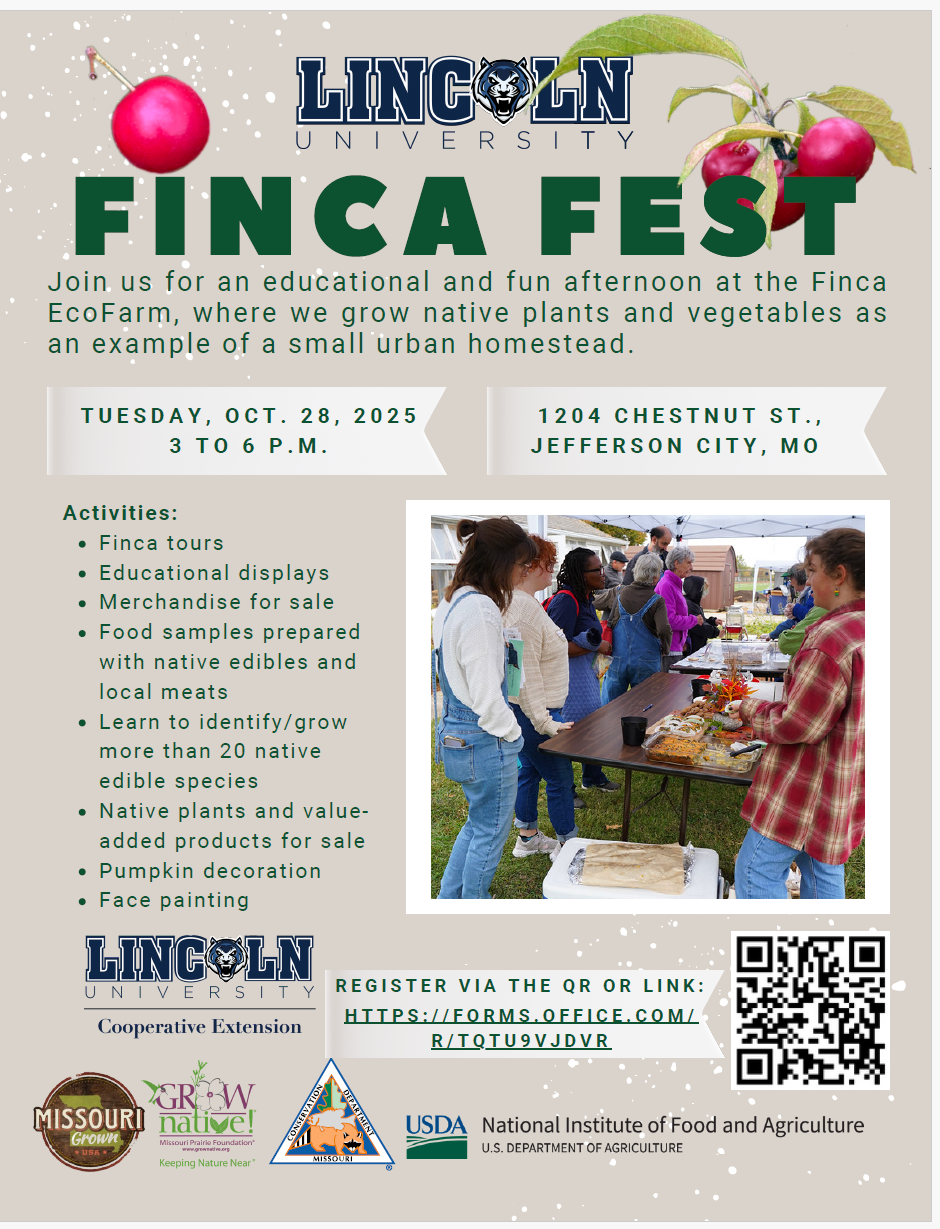 Join Lincoln University and others for a celebration of Missouri native edible plants and more at Finca Fest -- Jefferson City, MO on Oct. 28, 3pm-6pm.